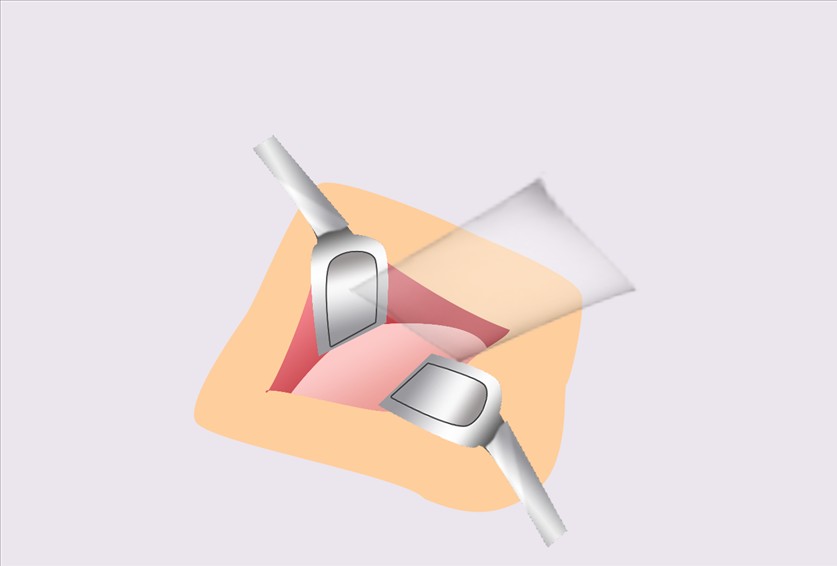 3.將粘克可吸收醫用膜兩端固定于腹膜,常規縫合腹膜、腹壁
